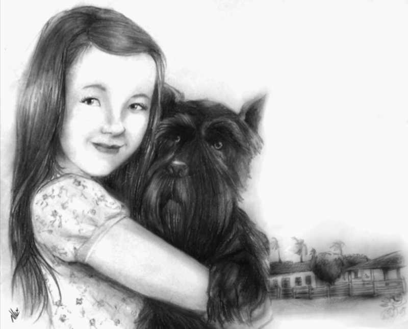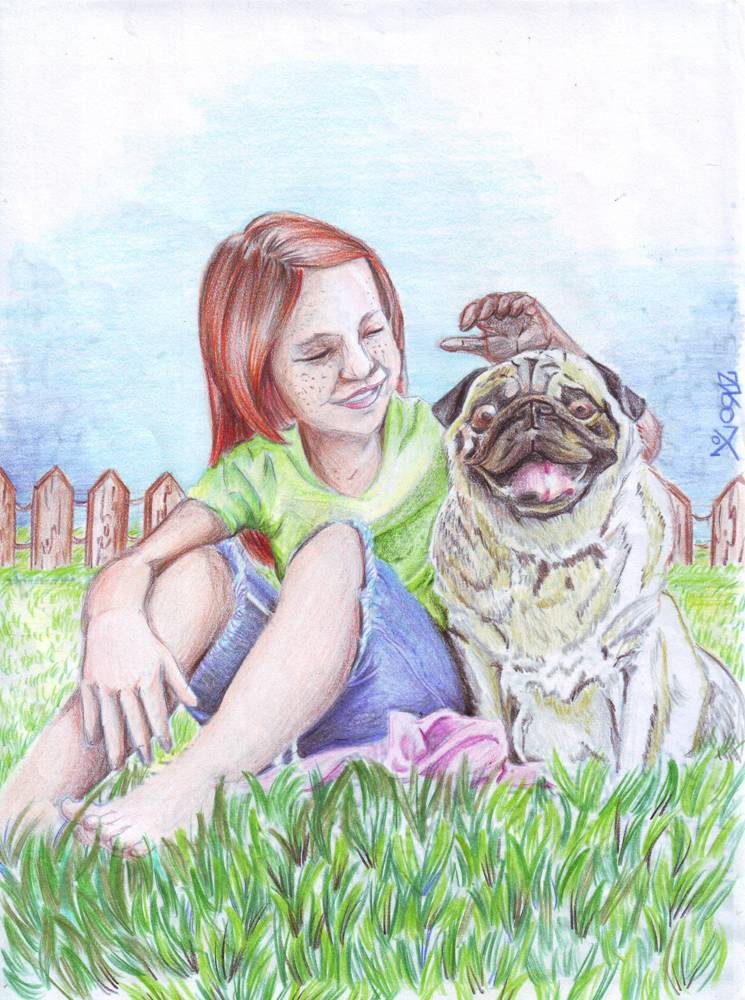 Desafio: Fazer uma ilustração realista de uma menina de aproximadamente 11 anos brincando com um cão. As características físicas e figurino de ambos ficarão a seu critério.