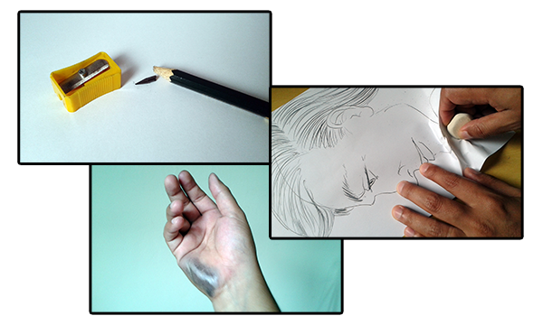 #1 – Desenhar com grafite e sujar a palma da mão