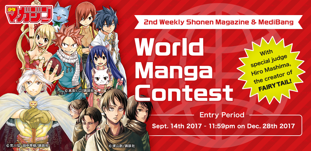 Chegou a segunda edição do Concurso Internacional de Mangá Weekly Shonen Magazine & MediBang, mais uma chance para você mangaká participar de um super concurso e ser avaliado por grandes profissionais do mangá japonês, principalmente pelo juiz Hiro Mashima, o criador de Fairy Tail!