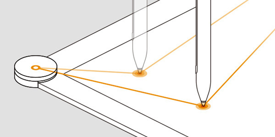 A ideia foi desenvolvida por um grupo da universidade de Keio, no Japão, que consiste na movimentação de um pequeno imã localizado sob a mesa e que atrai a ponta da caneta para se movimentar através de comandos de um computador.
