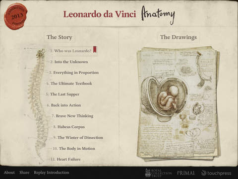 Quem possui ipad poderá ainda comprar e visualizar a coleção Leonardo da Vinci Anatomy, um aplicativo com todos os desenhos anatômicos do grande mestre.
