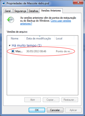 - Se aparecer uma outra versão anterior (como na imagem abaixo), você está com sorte, daí é só clicar em “Ok” que o Windows irá encarregar de restaurar seu arquivo. Se não aparecer, daí já era!