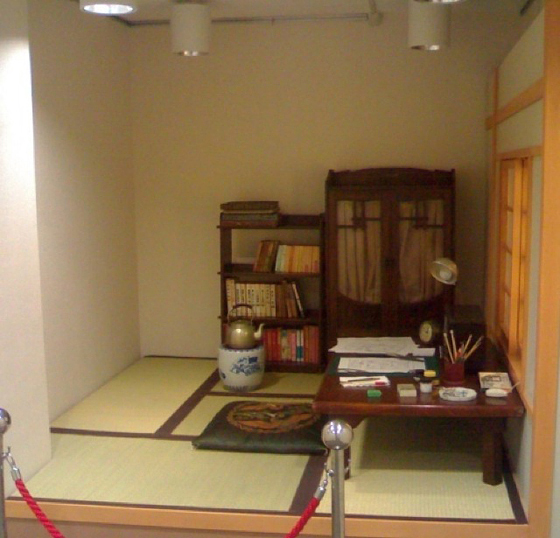O pai do Mangá tinha bastante espaço e iluminação. Não dá para ver bem o que está na mesa mas me parece organizado.