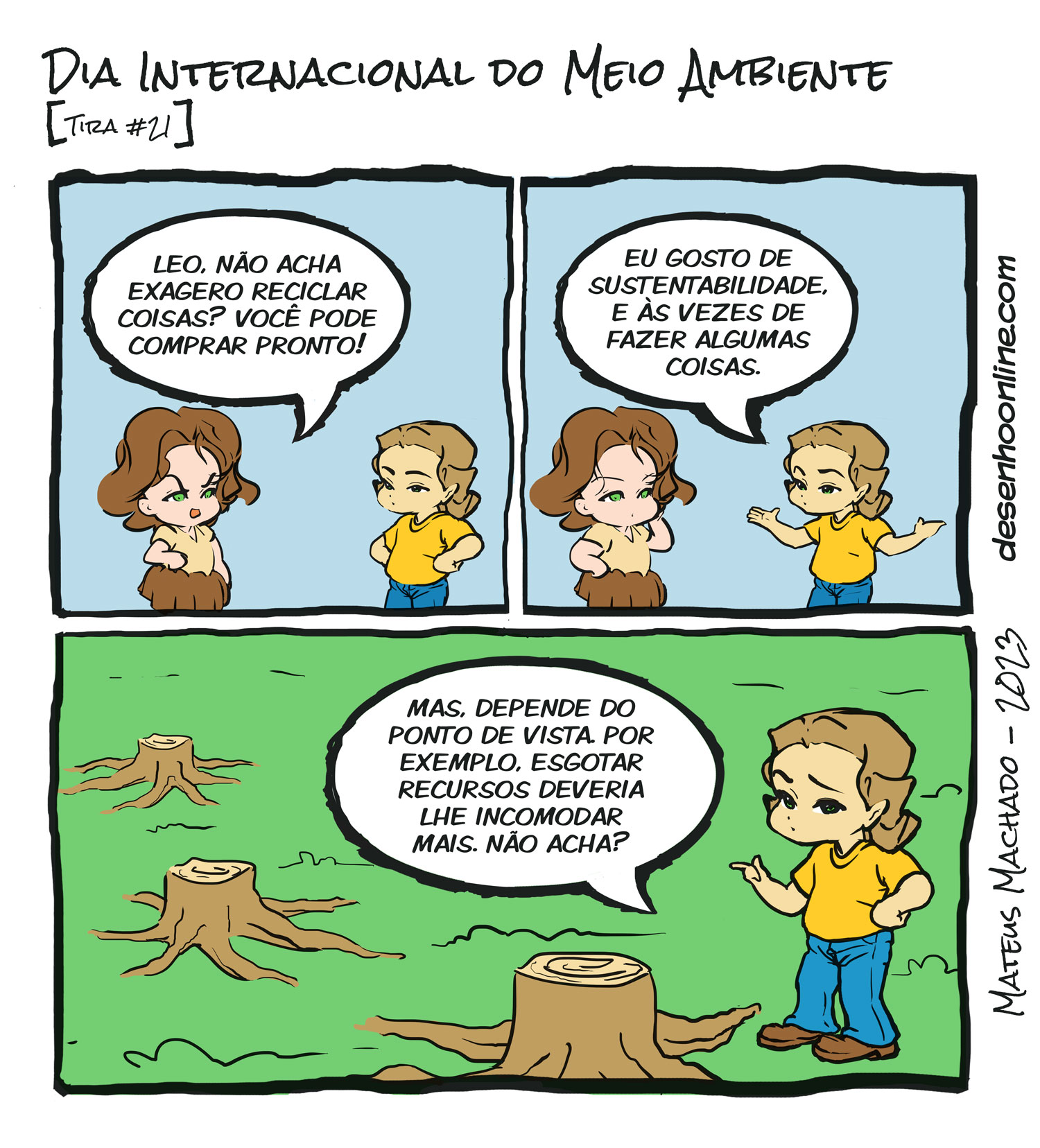 O Dia internacional do Meio Ambiente é uma data importante por razões óbvias, principalmente para nós reciclarmos nossa forma de nos relacionar com o meio ambiente e conservá-lo. Não só digo isso como tenho promovido tal mentalidade; afinal, quem conhece nosso blog há bastante tempo deve saber que eu, Mateus Machado, tenho através de tutoriais motivado os seguidores a aplicar valores de sustentabilidade em benefício do meio ambiente para os demais e para nós mesmos, e o legal é que isso pode ser feito de maneira eficiente, seja economizando e até mesmo descobrindo maneiras de resolver problemas no dia a dia. É por isso que existe, inclusive, uma página onde reunimos estes tutoriais que desenvolvi nos últimos anos, onde ensino como fazer materiais de desenho utilizando materiais que geralmente vão para o lixo, mas que podem ser reciclados. Tudo isso você confere na página do blog intitulada “ideias sustentáveis“. São vídeos mostrando o passo a passo de se confeccionar: