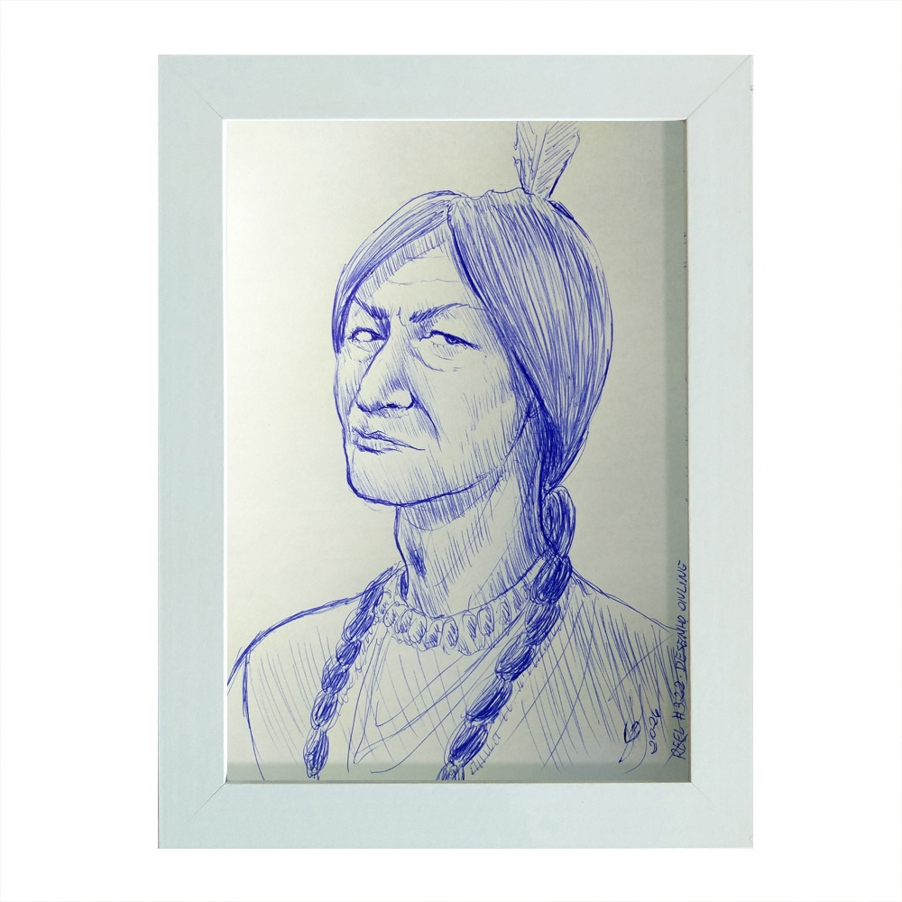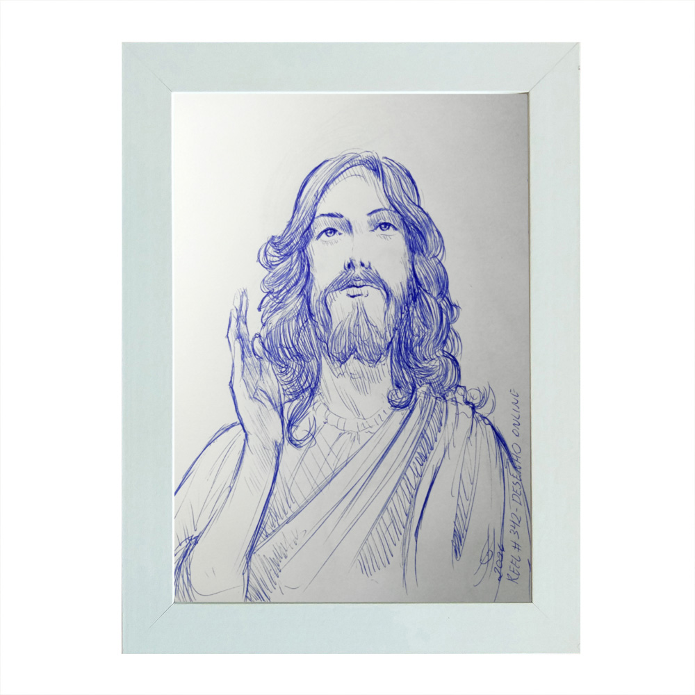 Os desenhos são produzidos com caneta esferográfica azul, uma técnica monocromática que exige controle absoluto e segurança no traço, sem possibilidade de correção. Luz, sombra e textura são trabalhadas de forma minuciosa, elevando um instrumento comum a um meio de expressão artística marcante e contemporâneo.