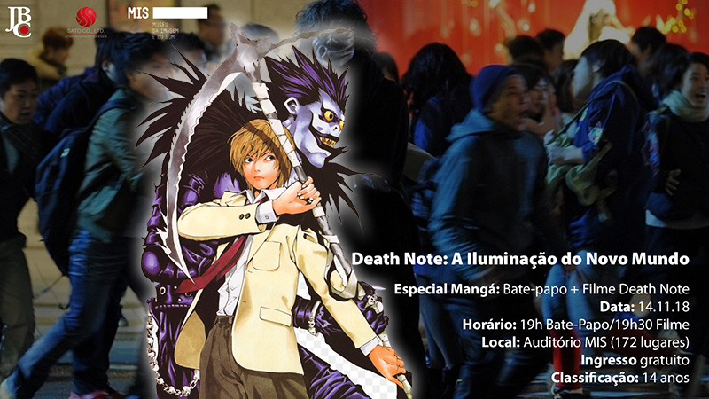 Death Note ganha uma noite especial no MIS! Atração da Sato Company e da Editora JBC sobre o mangá e o quarto longa-metragem da franquia Death Note, que ocorrerá no Museu da Imagem e do Som, em São Paulo.