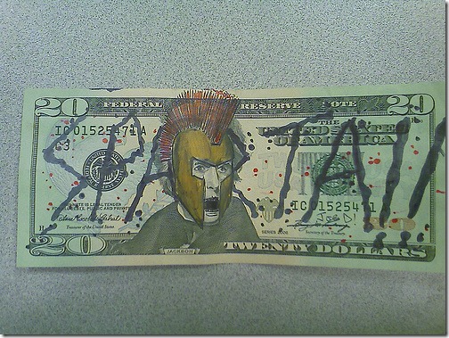 No EUA não é proibido desenhar nas notas ao não ser que modifique-as para mudar seu valor