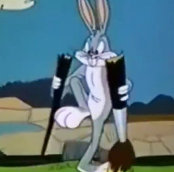 Bem, confira o preguiçoso coelho pernalonga brigando com o seu desenhista.