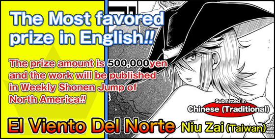 O segundo colocado, com a obra ” El Viento Del Norte”, de Niu Zai (Taiwan), ganhou o prêmio de popularidade em inglês, e receberá um total de 500.000 ienes (4, 7 mil dólares), além de ter seu trabalho publicado na Weekly Shonen Jump semanal da América do Norte.