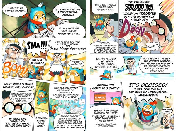 O SILENT MANGA AUDITION, é uma competição internacional de mangá que visa descobrir, apoiar e, finalmente, publicar o trabalho de criadores de mangás em todo o mundo. Com um painel de jurados composto por lendas de mangás, Tetsuo Hara (Punho da Estrela do Norte), Tsukasa Hojo (Caçador Urbano), Ryuji Tsugihara (Yoroshiku Mechadoc) e Editor Chefe Nobuhiko Horie, SILENT MANGA AUDITION a competição se tornou rapidamente o maior evento do gênero.