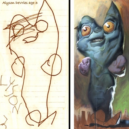 Artista transforma desenho de crianças em ilustrações surrealistas